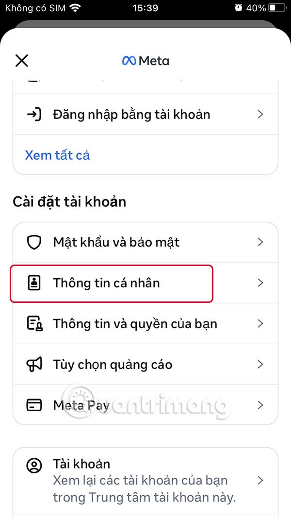 Chúng ta nhấn chọn vào Thông tin cá nhân rồi nhấn vào phần Quyền sở hữu và kiểm soát tài khoản.