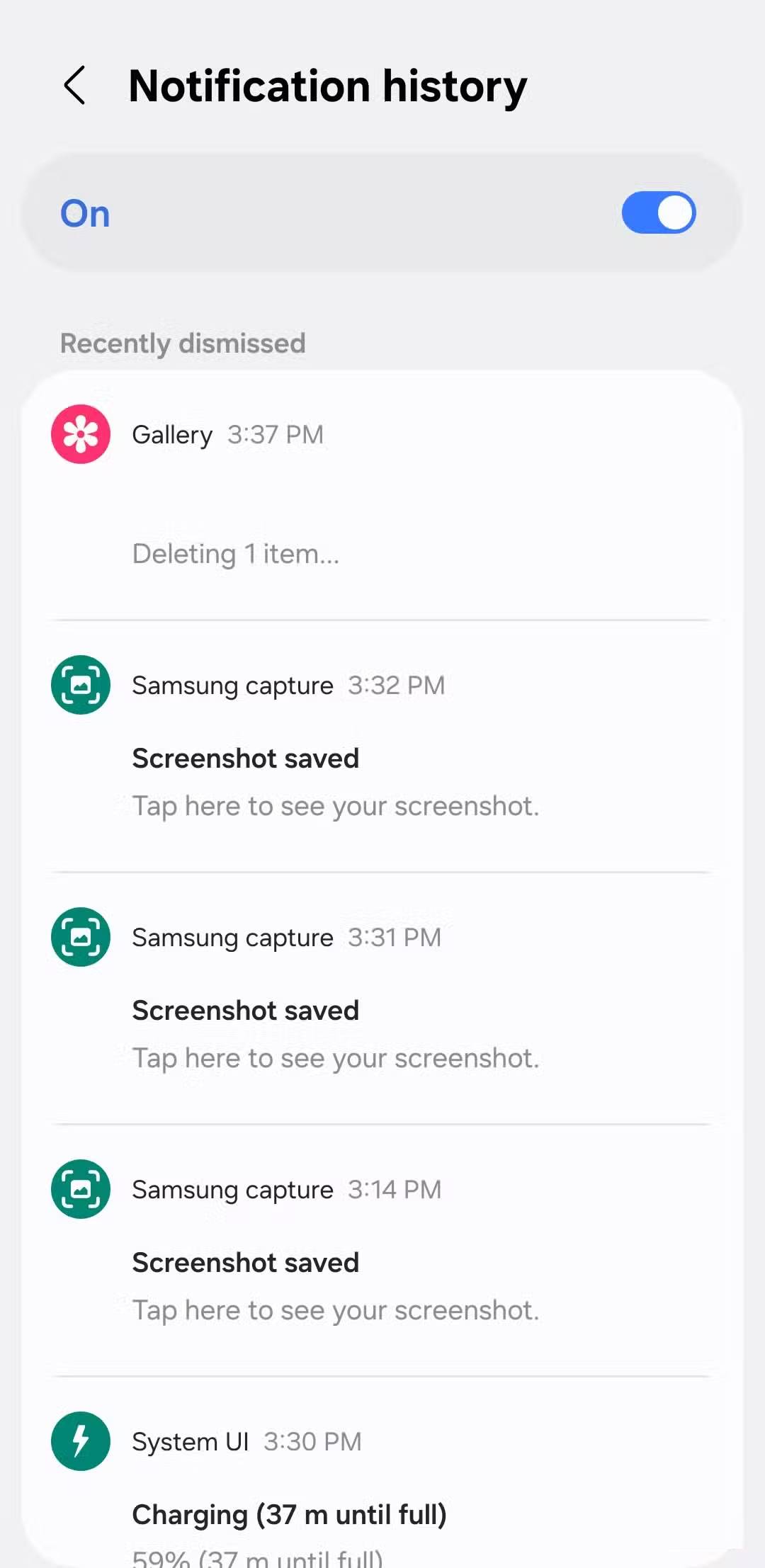 Có một vài điều cần lưu ý. Lịch sử thông báo không tự động ghi lại các cảnh báo cũ, điều này khá đáng tiếc nếu bạn mới khám phá tính năng này. Nó chỉ bắt đầu ghi lại cảnh báo ngay khi bạn bật. Ngoài ra, khi bạn tắt tính năng này sau đó, toàn bộ nhật ký sẽ bị xóa. Ngay cả khi bạn bật lại, lịch sử trước đó cũng sẽ không xuất hiện trở lại.