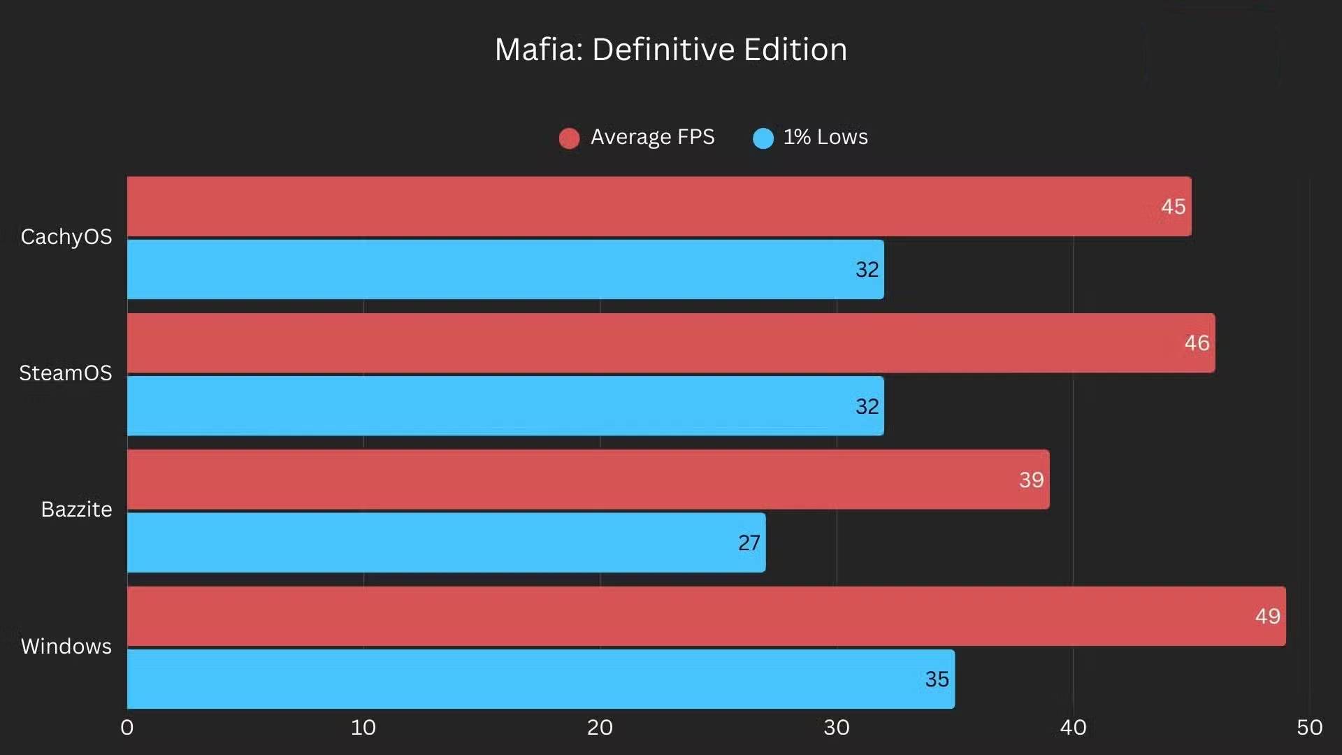 Lúc đầu mọi người rất thích Bazzite vì nó là một trong những bản phân phối đầu tiên đi kèm với trình biên dịch SteamOS, nhưng hiệu năng hơi kém so với các bản phân phối khác, và thậm chí cả Windows. Đó là lý do tại sao nhiều người bắt đầu tìm kiếm thêm các lựa chọn khác ngay từ đầu. Và như đã đề cập trước đó, việc cài đặt sẵn trình quản lý cửa sổ SteamOS là ưu tiên hàng đầu, vì vậy CachyOS hiện đã ngang bằng với Bazzite.