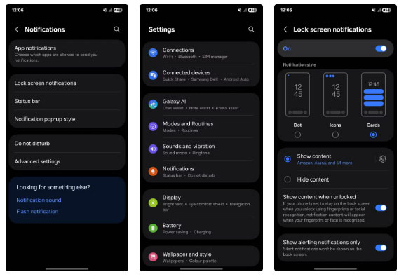 - Truy cập Settings và nhấn vào Notifications > Lock screen notifications.