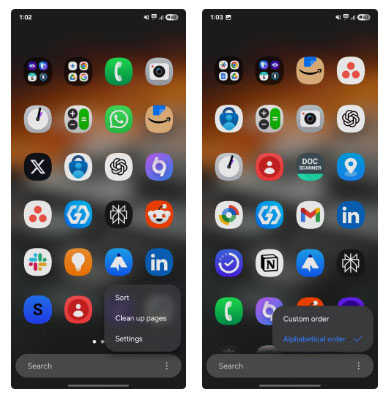 Theo mặc định, tính năng này bị tắt, nhưng việc bật tính năng này rất dễ dàng. Chỉ cần mở ngăn kéo ứng dụng, nhấn vào ba dấu chấm ở góc dưới bên phải và chọn Sort từ menu. Sau đó, chọn Alphabetical order và thế là xong - bạn đã có ngăn kéo ứng dụng cuộn theo chiều dọc.