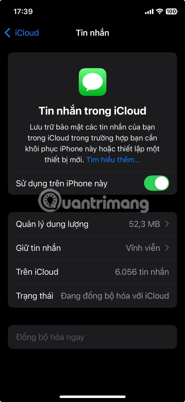 - Vào Tin nhắn trong iCloud và tắt Sử dụng trên iPhone này.