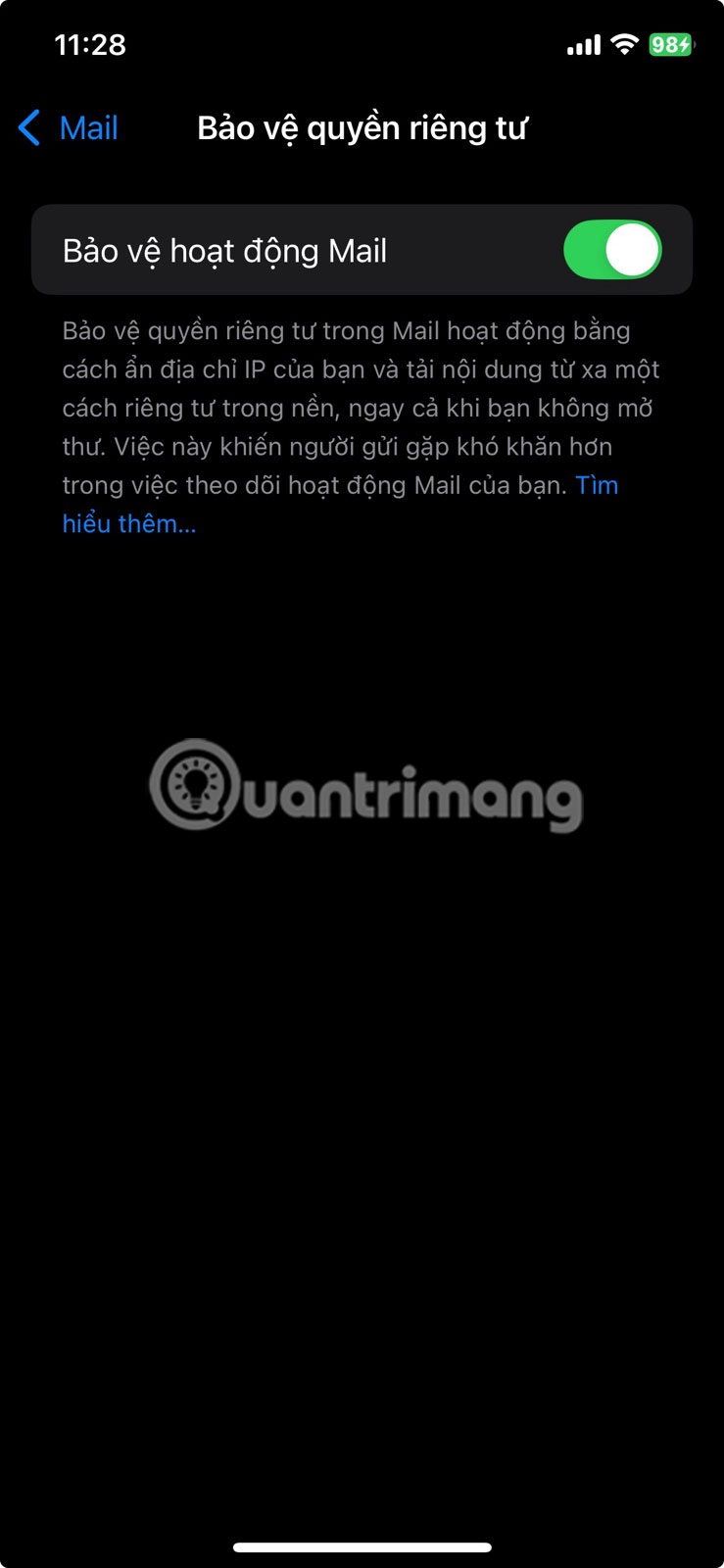 Để bật tính năng bảo vệ quyền riêng tư của Mail, hãy mở Cài đặt > Ứng dụng > Mail > Bảo vệ quyền riêng tư và bật nút chuyển đổi Bảo vệ hoạt động Mail. Lưu ý rằng tính năng này sẽ không dừng theo dõi nếu bạn nhấn vào liên kết bên trong email, vì vậy nếu có điều gì đó đáng ngờ, hãy tin vào trực giác của bạn và đừng chạm vào.