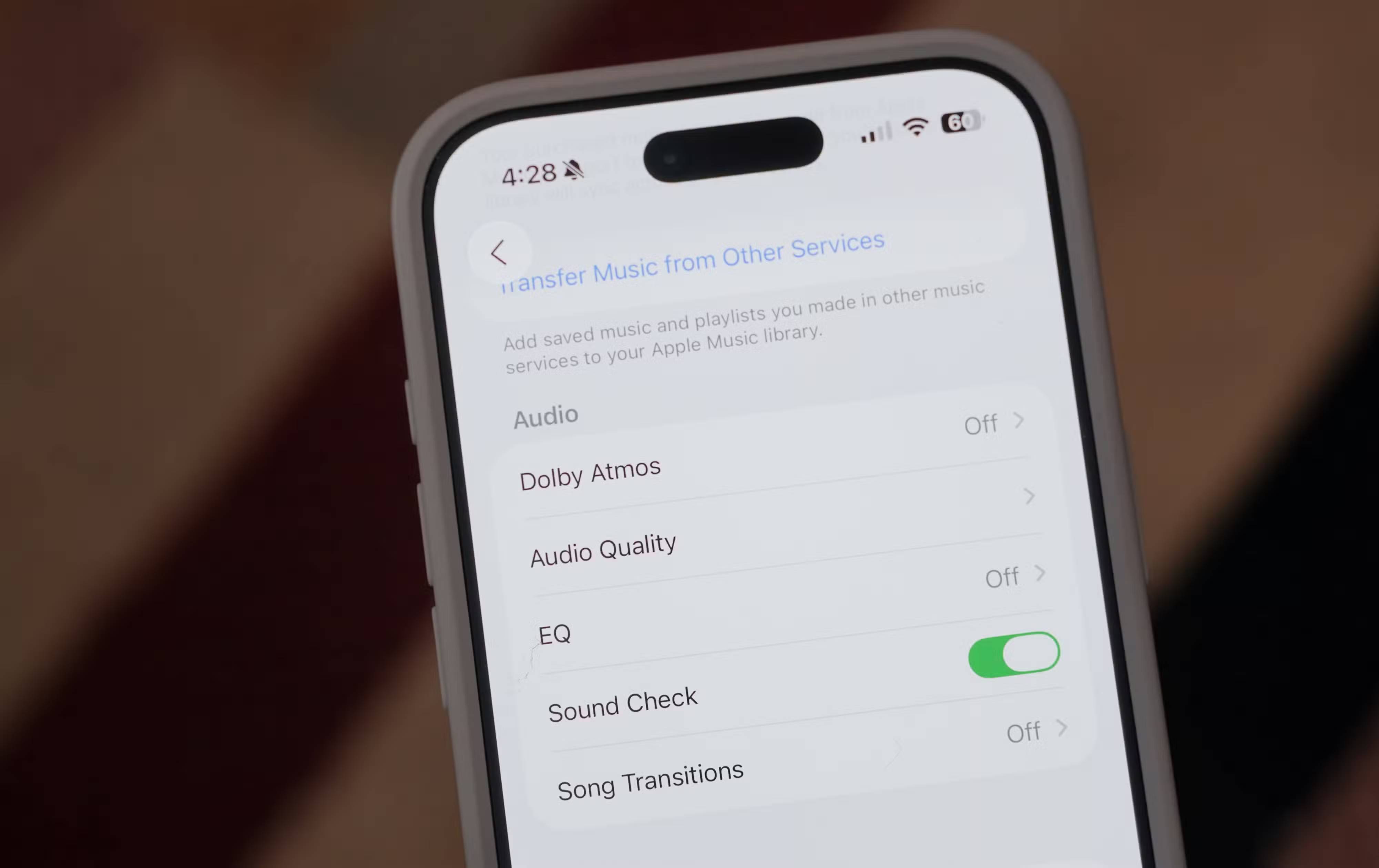 Người dùng Spotify có thể tìm thấy EQ của mình bằng cách điều hướng đến Settings > Playback > Equalizer. Đối với YouTube Music, mục này nằm trong Settings > Equalizer. Các ứng dụng stream nhạc trên Android thường sử dụng cấu hình EQ hệ thống của thiết bị, vì vậy, khi nhấn nút chỉnh âm, bạn sẽ được chuyển đến ứng dụng EQ mặc định. Các streamer Apple Music trên iOS có thể mở ứng dụng Settings và điều hướng đến Music > EQ để chọn cài đặt preset.