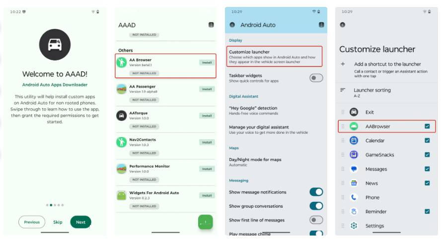 - Bật ứng dụng AA Browser trong phần tùy chỉnh launcher.