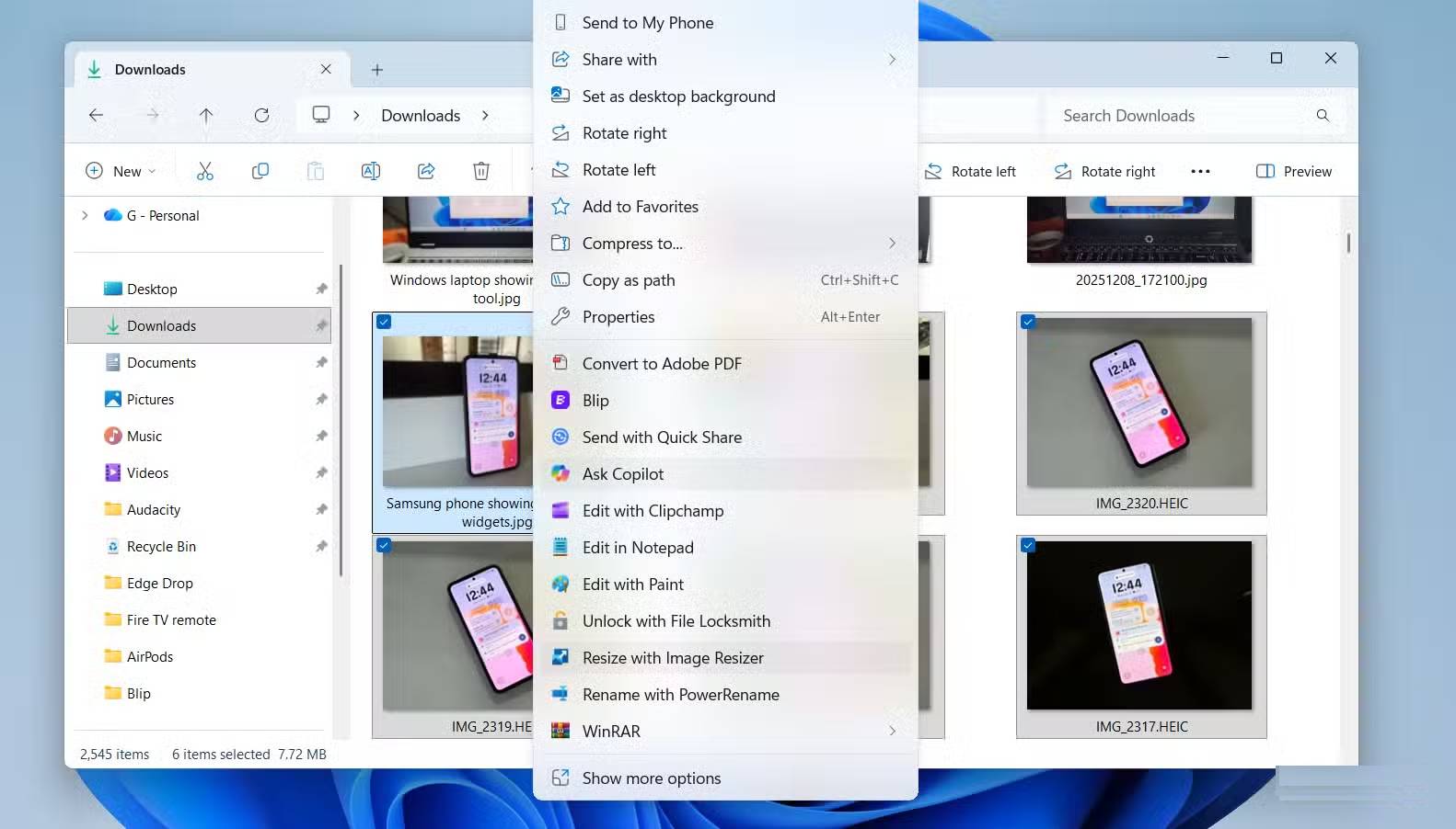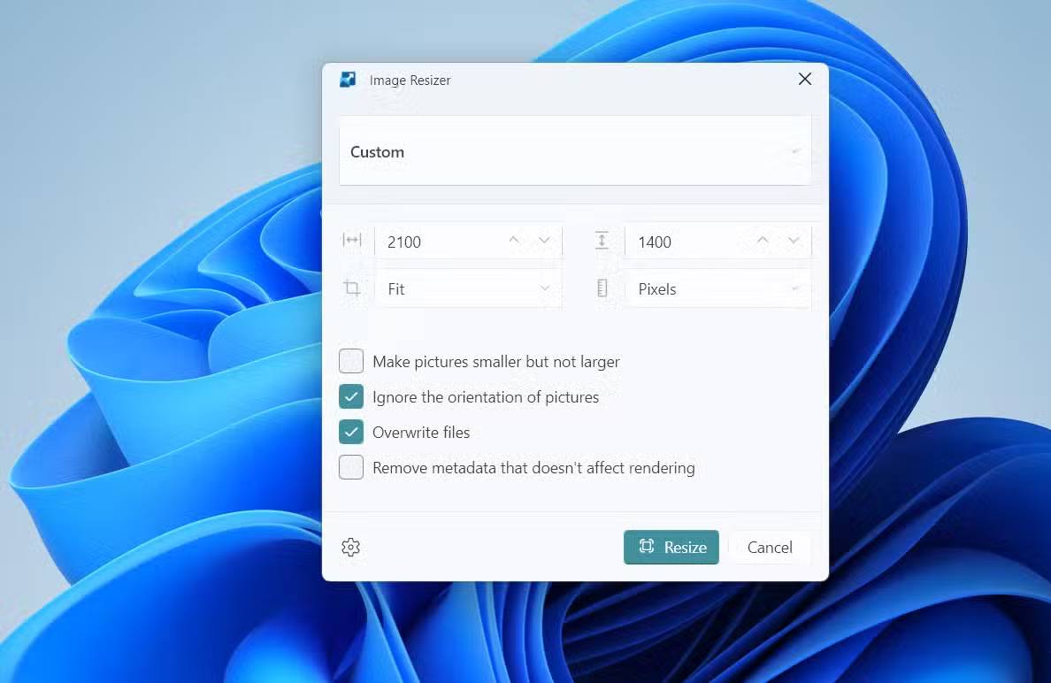 Nếu bạn thường xuyên làm việc với hình ảnh, Image Resizer là một công cụ hữu ích khác. Nhấp chuột phải vào bất kỳ hình ảnh nào hoặc nhiều hình ảnh, chọn Resize with Image Resizer, và bạn có thể thu nhỏ chúng để gửi email hoặc khớp với kích thước pixel cụ thể. Bằng cách này, bạn không cần phải mở bất kỳ trình chỉnh sửa ảnh nào hoặc sử dụng một trong những công cụ dựa trên web đó.