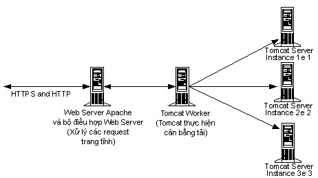 Như những gì bạn có thể thấy trên hình trên, Web server Apache nhận request HTTP và HTTPS từ các máy khách. Nếu request là HTTPS, thì Web server Apache sẽ mã hóa request và gửi nó đến adapter máy chủ Web, máy chủ sẽ gửi request đến Tomcat Worker, gồm có cả thuật toán cân bằng tải. Tương tự với Web server proxy, thuật toán này cũng cân bằng tải giữa các máy như Tomcat.