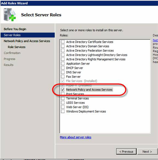 Hình 5: Win 2008 Role Services là một phần trong role Network Policy and Access Services