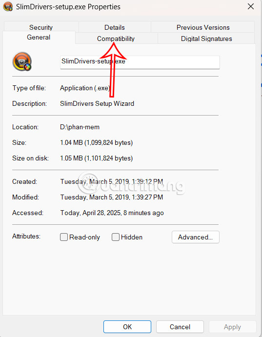 Chuyển vào giao diện mới, nhấn vào tab Compatibility để điều chỉnh chế độ tương thích khi chạy phần mềm này.