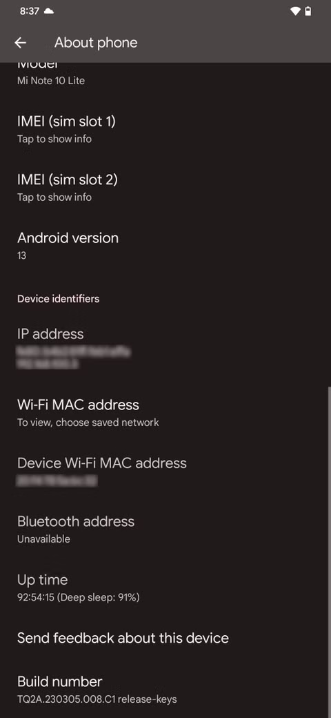 Để sử dụng ADB trên thiết bị Android, trước tiên bạn phải bật Developer Options. Để thực hiện việc này, hãy khởi chạy ứng dụng Settings, mở phần About phone, cuộn xuống cho đến khi tìm thấy mục Build number và nhấn vào đó 7 lần cho đến khi bạn thấy thông báo xác nhận.