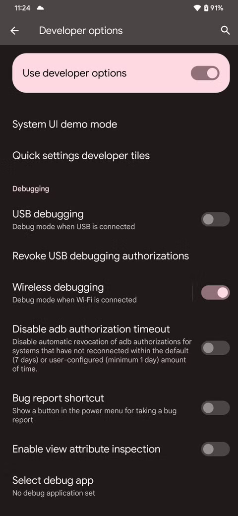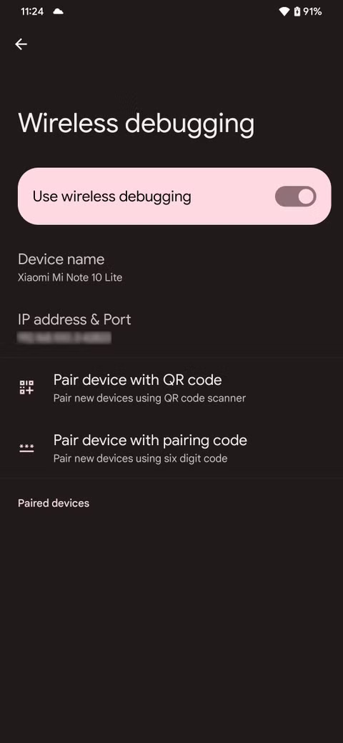 Lưu ý: Trên các thiết bị OnePlus, bạn phải bật tùy chọn Wireless ADB Debugging nếu có.