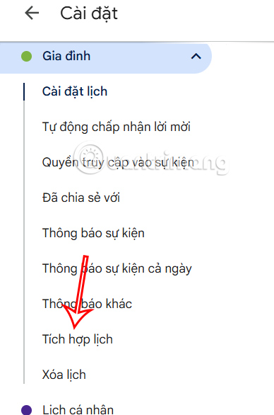 Tiếp tục nhìn sang bên trái, chúng ta nhấn chọn vào Tích hợp lịch.
