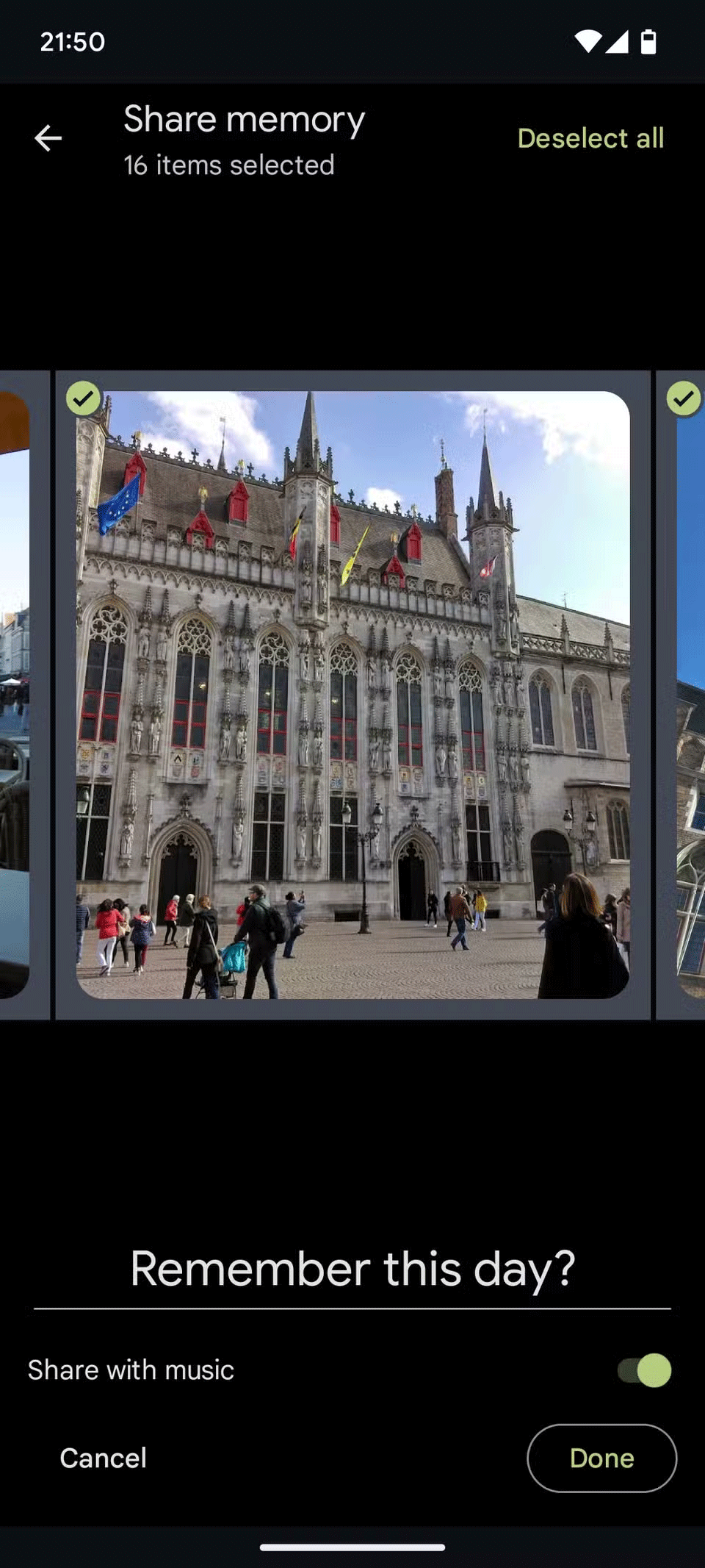 Bây giờ, nếu thấy kỷ niệm muốn chia sẻ, bạn có thể chỉnh sửa một số thứ trước khi chia sẻ toàn bộ slideshow ảnh dưới dạng file video. Tất cả những gì bạn cần làm là nhấn vào nút Share và chọn Share Memory.