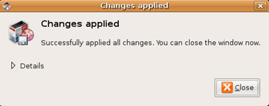 Khi hộp thoại Changes applied xuất hiện, bạn bấm nút Close để hoàn thành thao tác cài đặt dịch vụ chia sẻ.