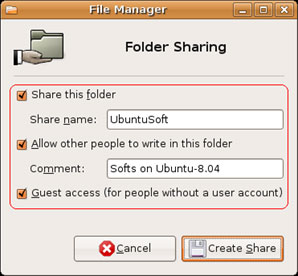 Nếu đánh dấu chọn vào mục Guest access, tất cả các tài khoản không thuộc về hệ thống Ubuntu đều có thể truy cập thư mục này.