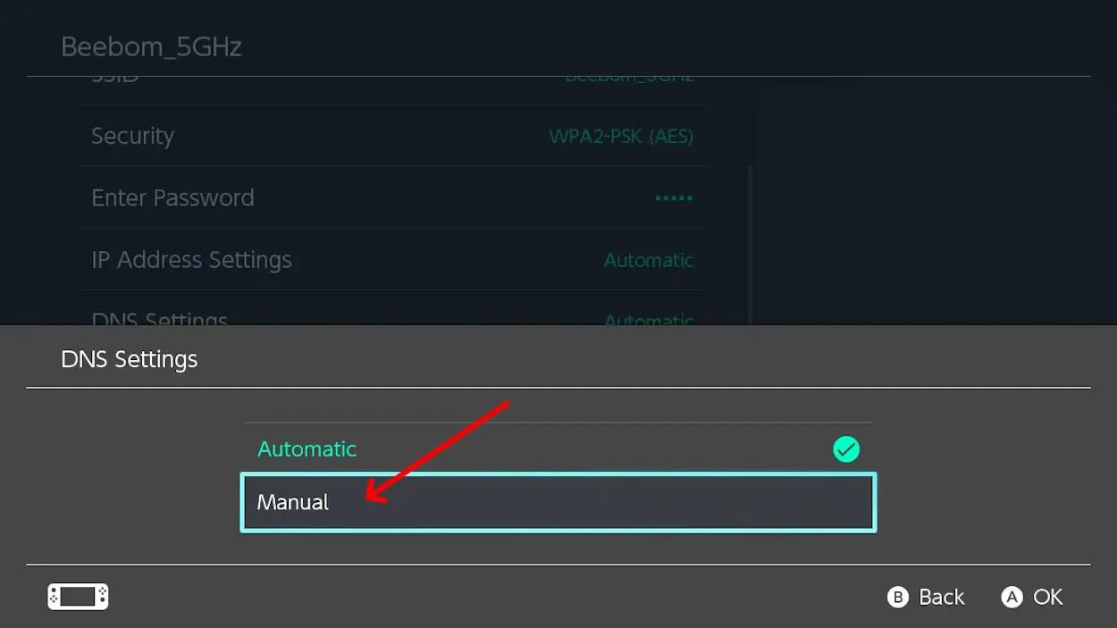 - Bây giờ, hãy đổi "Automatic" thành "Manual" và chọn "Primary DNS" bằng nút A.