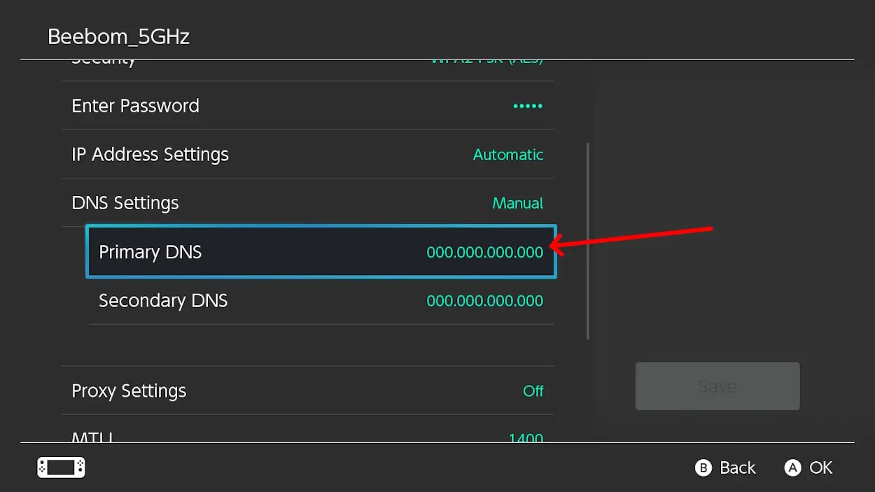 - Bây giờ, bạn có thể giữ nút B để xóa DNS và đặt giá trị thành 0.