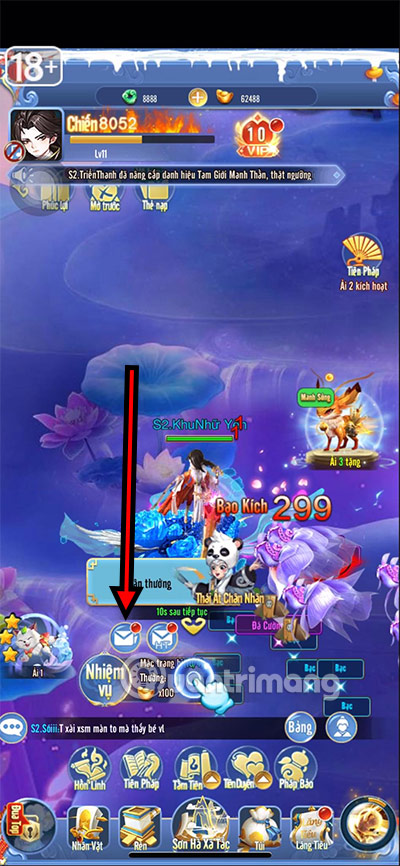 Chọn Thư, bạn sẽ thấy danh sách thư gửi về từ nhà phát hành game. Trong đó có hai mục Thư và Thư HT.