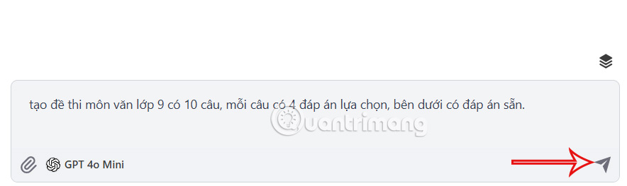 Hiển thị giao diện để bạn nhập yêu cầu để tạo đề thi với môn học và khối học để công cụ thực hiện. Bạn nên viết rõ nội dung về đề thi muốn tạo để công cụ hiểu nhanh và rõ hơn.