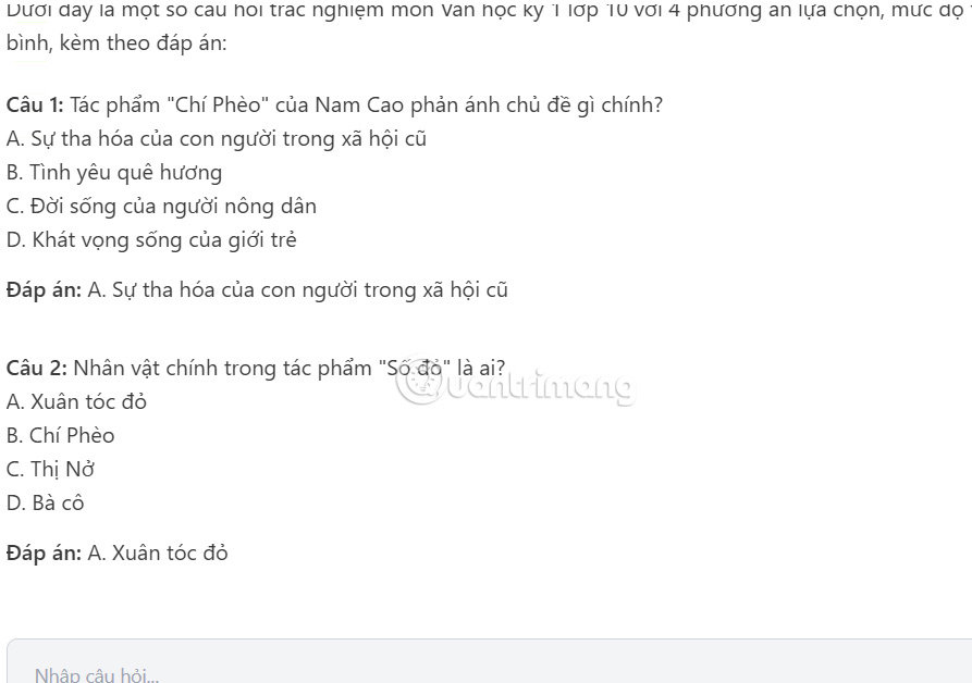 Kết quả bạn sẽ nhìn thấy đề thi được tạo dựa theo yêu cầu và nội dung mà bạn đã nhập. Thầy cô hay học sinh có thể sử dụng cho nội dung giảng dạy và học tập của mình.