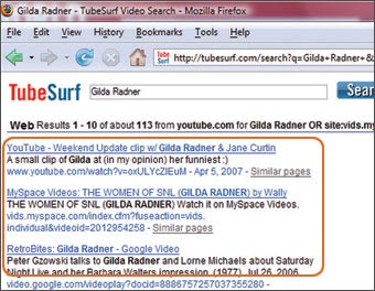 TubeSurf, dịch vụ tìm kiếm video, kết hợp các kết quả từ Google, MySpace, YouTube và Yahoo. |