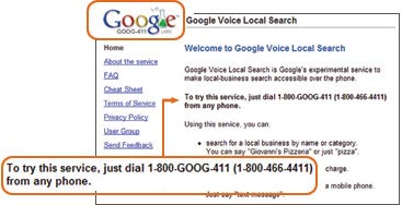 Trong tất cả giao diện, ô tìm kiếm vẫn là phương tiện nhập liệu duy nhất. Đừng kỳ vọng điều này sớm thay đổi, mặc dù việc tìm kiếm bằng giọng nói hiện đang tiến triển. Google gần đây đã tiết lộ về dịch vụ thử nghiệm Voice Local Search của mình, bạn có thể quay số điện thoại tại Mỹ 800/GOOG-411 (800/466-4411) để thử (dịch vụ này hiện chỉ có tại Mỹ).