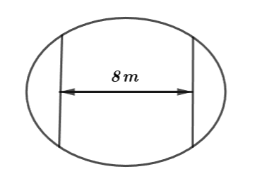 Bài tập 1. Ông An có một mảnh vườn hình elip có độ dài trục lớn bằng 16m và có độ dài trục bé bằng 10m. Ông muốn trồng hoa trên một dải đất rộng 8m và nhận trục bé của elip làm trục đối xứng (như hình vẽ).