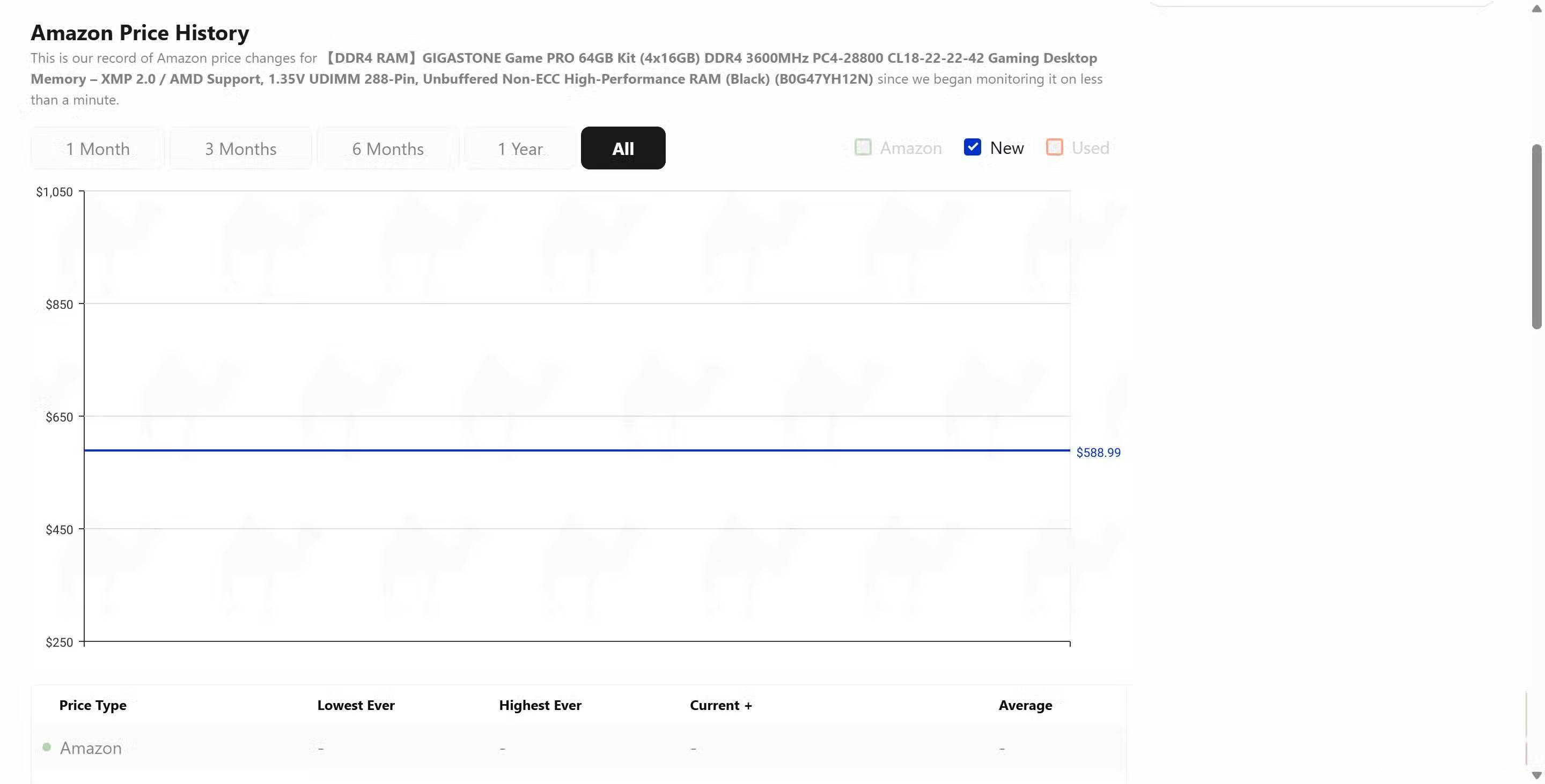 Khi so sánh giá RAM DDR4 trên Amazon, bạn sẽ tìm thấy một sản phẩm RAM 64GB với giá khoảng 580 USD. Điều này chứng minh luận điểm về việc giá RAM DDR4 tăng cùng với DDR5. Nhưng khi xem xét kỹ hơn, bộ RAM đắt đỏ này chỉ mới được thêm vào Amazon vào ngày 4 tháng 1 năm 2026, và ngay lập tức được bán với mức giá điên rồ đó. Công bằng mà nói, bộ kit Patriot Memory Viper Elite II DDR4 64GB này có giá 564 USD, và mặc dù giá của nó đã tăng hơn gấp đôi kể từ tháng 10 năm 2025, đó vẫn là mức giá "mới" cho dung lượng này.