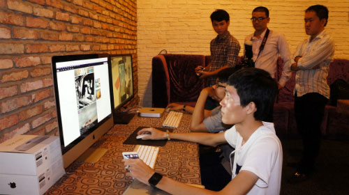 Dân công nghệ trải nghiệm iMac Retina 5K tại buổi offline. Ảnh: Thanh Viên.