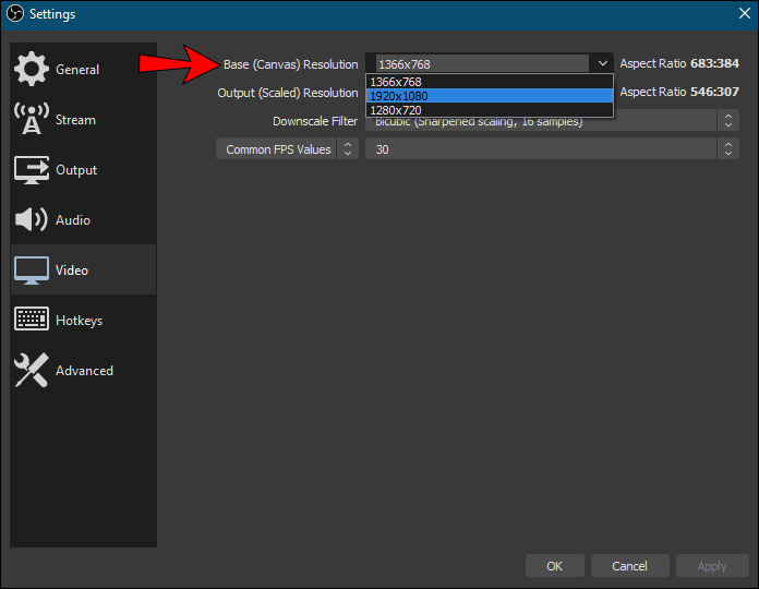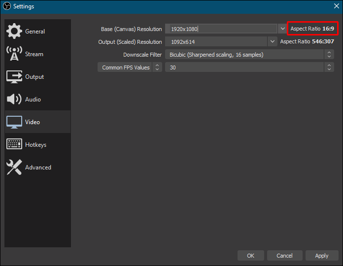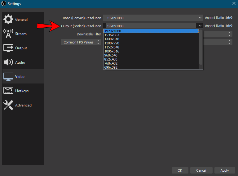 Có hai cấu hình được đề xuất cho độ phân giải cơ bản: 1920×180 hoặc 1280×720. Với 1080p và 720p, tỷ lệ khung hình được tự động đặt thành 16:9, đây là giải pháp tối ưu cho hầu hết màn hình máy tính. Tuy nhiên, một số streamer thích cài đặt 1600×900 hơn vì nó nằm giữa hai độ phân giải tiêu chuẩn. Nếu bạn muốn tự mình thử, đây là các bước để thay đổi độ phân giải cơ bản trong OBS: