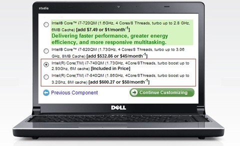 Hai bộ vi xử lý mới được Dell đưa vào tùy chọn phần cứng cho các laptop của mình là Intel Core i7-740QM và i7-840QM.