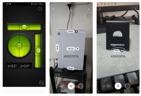 Tất cả những gì bạn cần làm là tải xuống ứng dụng như AR Ruler, sau đó bạn có thể đo chiều dài, chiều rộng, chiều cao, bán kính, v.v... chỉ bằng camera điện thoại. Đối với các tác vụ cân bằng, các ứng dụng như Bubble Level biến điện thoại của bạn thành thước thủy kỹ thuật số. Sau đó, bạn có thể sử dụng điện thoại để kiểm tra xem bề mặt có hoàn toàn nằm ngang hay thẳng đứng không.