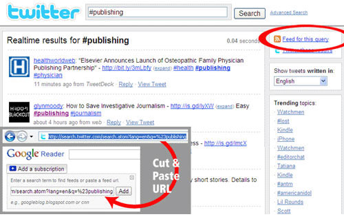 Giống như Google Alerts, bạn có thể sử dụng các tìm kiếm này cho vấn đề nghiên cứu thị trường của mình; bất cứ khi nào ai đó đề cập đến công ty , các đối thủ cạnh tranh hoặc lĩnh vực của bạn, một lưu ý sẽ xuất hiện trong RSS reader. Đây chính là cách thực hiện, thậm chí nếu bạn không có tài khoản Twitter.