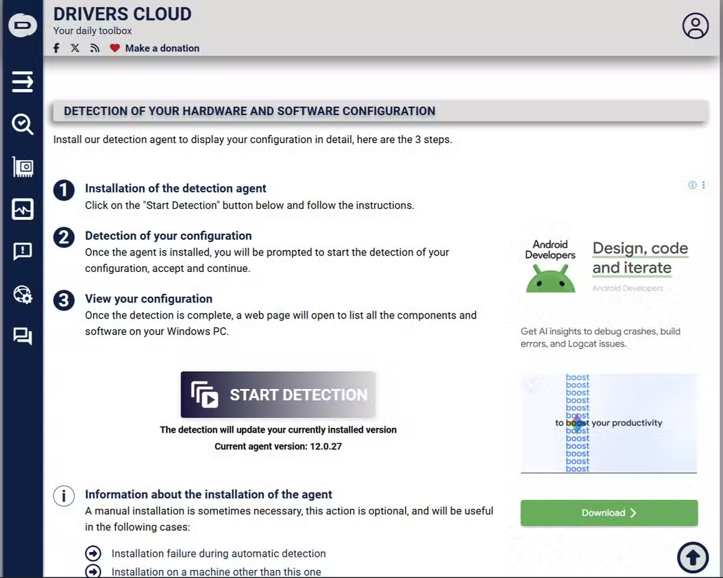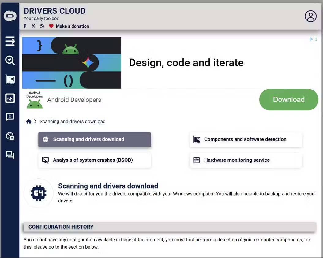 - Điều hướng đến trang web Drivers Cloud và chọn Scanning and drivers download.