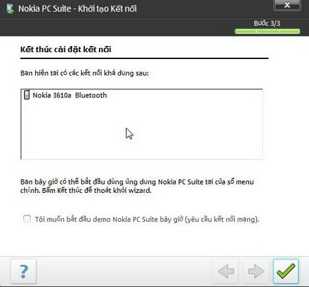 Sau khi PC Suite tiến hành quá trình tìm kiếm điện thoại được kết nối với máy tính, bạn tiếp tục bước tiếp theo |