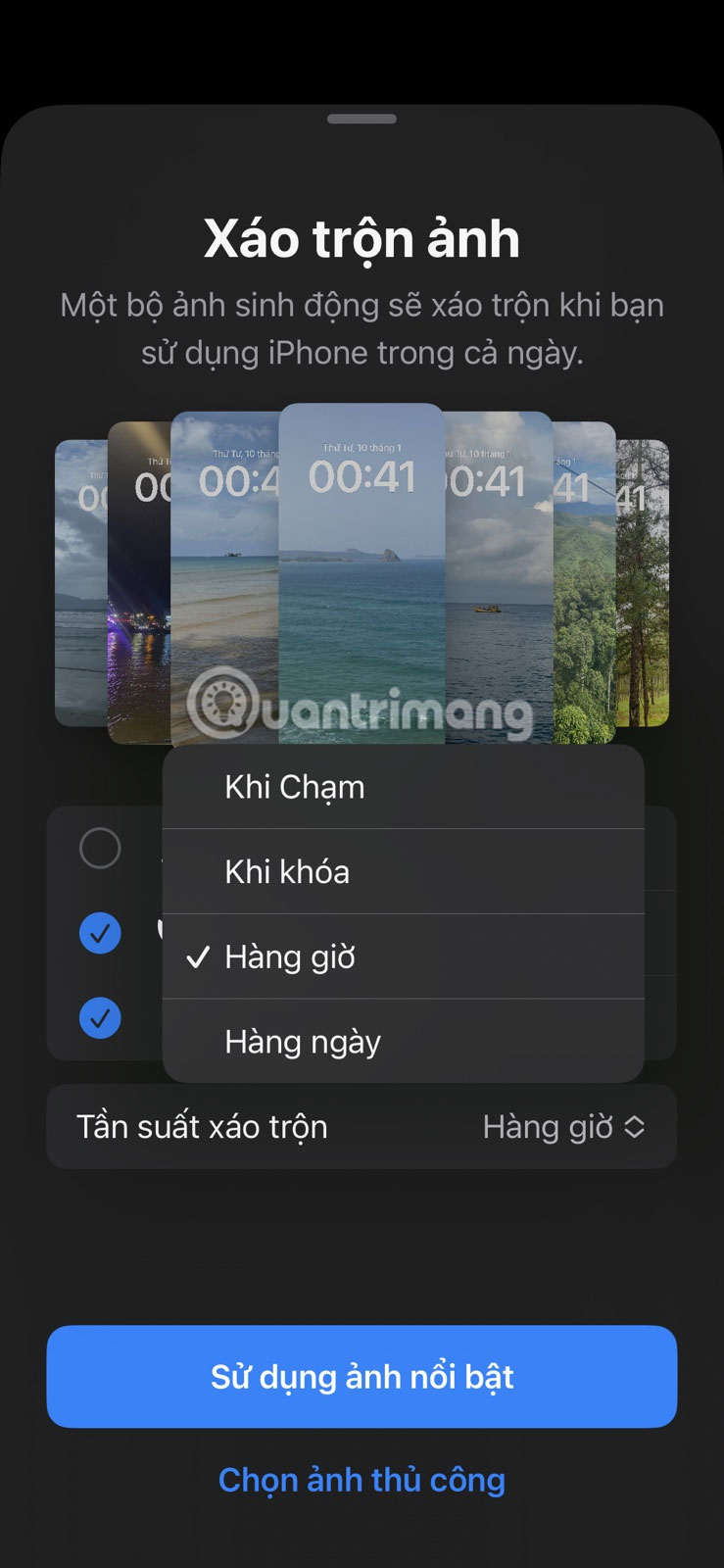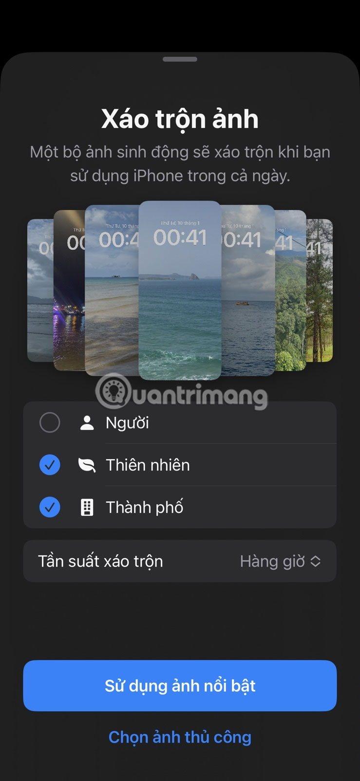 Phần còn lại của quá trình là giống hệt như cách 1. Chọn Sử dụng ảnh nổi bật để xáo trộn tự động và Chọn ảnh thủ công để chọn ảnh của riêng bạn.