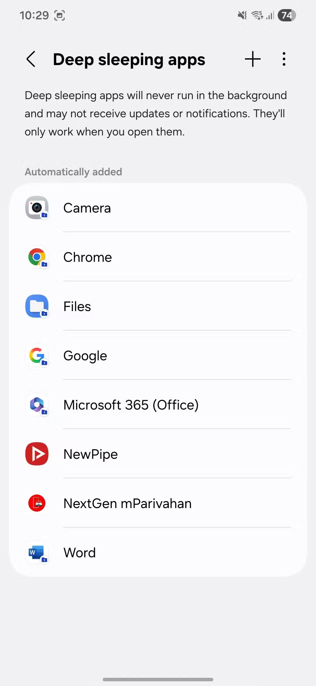 Vào Settings > Battery > Background usage limits > Sleeping apps hoặc Deep sleeping apps. Nhấn vào biểu tượng dấu cộng ở trên cùng và bắt đầu thêm ứng dụng. Nếu bạn muốn xóa bất kỳ ứng dụng nào khỏi danh sách, hãy nhấn vào biểu tượng ba chấm ở góc trên bên phải và chọn Remove.