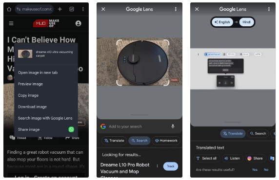 Khi duyệt trên điện thoại, mọi người thường dựa vào Google Lens để nhanh chóng xác định sản phẩm, khám phá nơi mua thứ gì đó mình nhìn thấy hoặc thậm chí dịch văn bản trong hình ảnh. Tất cả những gì phải làm là nhấn và giữ hình ảnh và chọn Search with Google Lens. Nhanh chóng, trực quan và cực kỳ hữu ích.