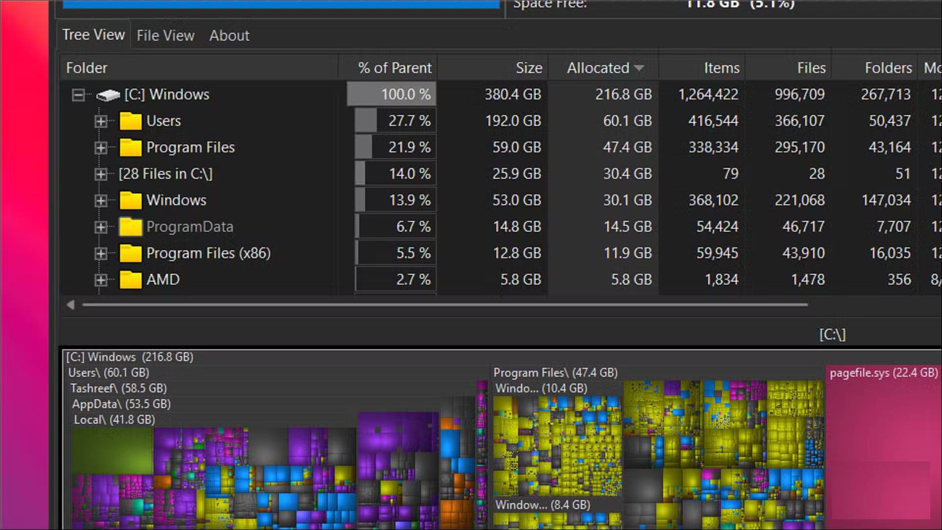 Sử dụng WizTree để tìm dung lượng bị mất