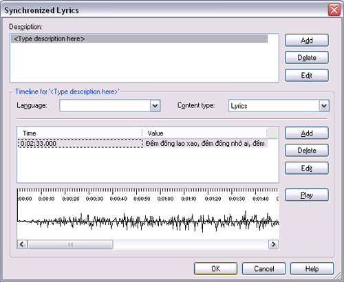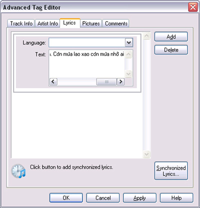 Tiếp theo chọn vào Synchronized Lyrics, rồi nhấp OK.