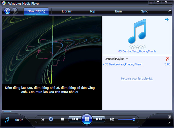 Với chương trình Windows Media Player, bạn có thể trình diễn lời của bài hát ra cửa sổ của Windows Media Player giống như bạn hát karaoke bằng cách sau: