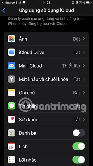 Nếu ứng dụng nào đó gặp vấn đề với việc đồng bộ hóa với iCloud thì bạn có thể tắt và bật lại chế độ đồng bộ để khắc phục.