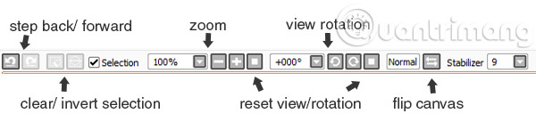 Tính năng Step back có thể hỗ trợ khi bạn muốn hoàn tác về hành động trước đó. Bạn có thể sử dụng bước này hơn 10 lần, vì vậy bạn sẽ không phải lo lắng khi có sự cố xảy ra. Việc xoay canvas có thể giúp ích khi bạn phải vẽ ở một số góc khó. Nút Reset sẽ trả về chế độ xem và xoay mặc định. Việc lật khung hình cho bạn một cái nhìn mới về tác phẩm của mình và cũng giúp bạn tìm ra những lỗi sai nếu có.