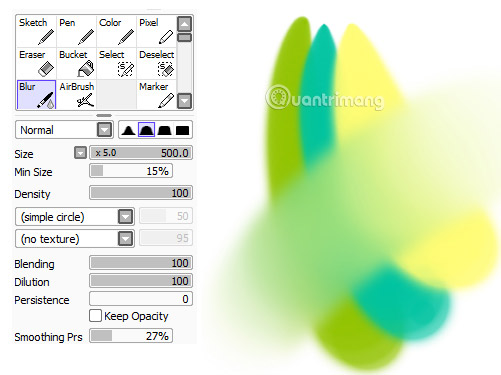 Quay lại công cụ Blur - không giống như công cụ Color, nó pha trộn các màu gốc và thay đổi chúng thành màu hoàn toàn khác. Hãy cẩn thận với điều đó, bởi vì đôi khi lạm dụng công cụ này có thể ảnh hưởng đến chất lượng tổng thể trên tác phẩm của bạn, làm màu sắc trông không rõ ràng và nhợt nhạt.