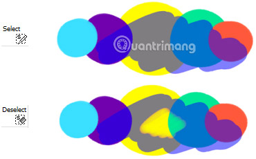 Select và Deselect là các công cụ hoạt động theo một cách khá đơn giản. Sử dụng chúng như một brush bạn thường dùng ở những địa điểm bạn muốn chọn hoặc bỏ chọn. Sau khi thực hiện lựa chọn, bạn có thể di chuyển sang một layer khác và vẽ ở đó, nhưng bạn vẫn sẽ làm việc bên trong khu vực đã chọn cho đến khi bạn nhấn Clear Selection trên Quick Bar.