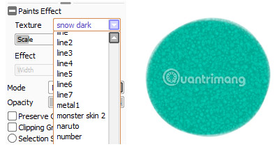 Tiếp theo là bảng điều khiển Paint Effects, bao gồm Texture và Effect. Bạn sẽ tìm thấy Layer Mode và Opacity với các thủ thuật layer hữu ích bên dưới. Hãy xem xét chúng kỹ hơn.