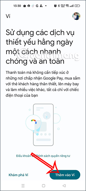 Sử dụng ứng dụng thanh toán Google Pay, người dùng có thể thêm thẻ VISA vào và dùng để thanh toán không chạm với máy POS mà không cần mang theo ví thông thường hay thẻ cứng.