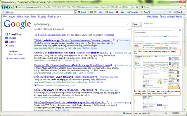 Hiện trang Google.com.vn vẫn chưa được áp dụng tính năng Google Instant Preview. Bạn có thể vào trang Google.com/ncr để có thể thử nghiệm tính năng mới này của Google. |