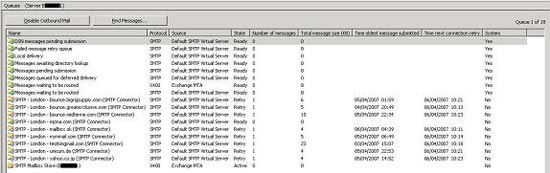 Nhìn vào các thay đổi trên giao diện người dùng, có lẽ đã đến lúc chúng ta nên chuyển sang phần lý thuyết cơ sở về hàng đợi trong Exchange 2007. Tuy nhiên, trước khi quan tâm đến điều này, bạn cần chú ý một số thông tin quan trọng khác. Không phải tất cả server Exchange 2007 đều có hàng đợi! Đây là điểm khác biệt lớn với Exchange 2003, vì ở Exchange 2003 tất cả server nằm trong quá trình truyền vận thư đều có một hàng đợi SMTP. Trong Exchange 2007 chỉ có các server Hub Transport và Edge Transport là có.