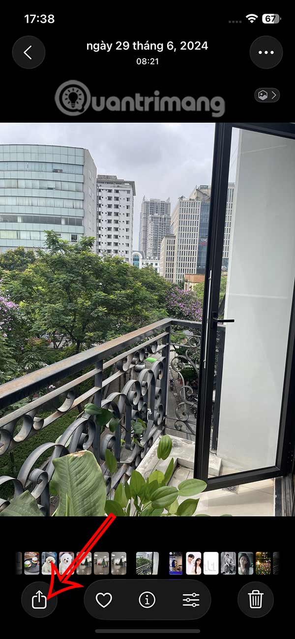 Chúng ta nhấn vào ảnh muốn cài làm hình nền rồi nhấn tiếp vào biểu tượng chia sẻ bên dưới. Tiếp đến bạn nhấn vào Dùng làm hình nền.